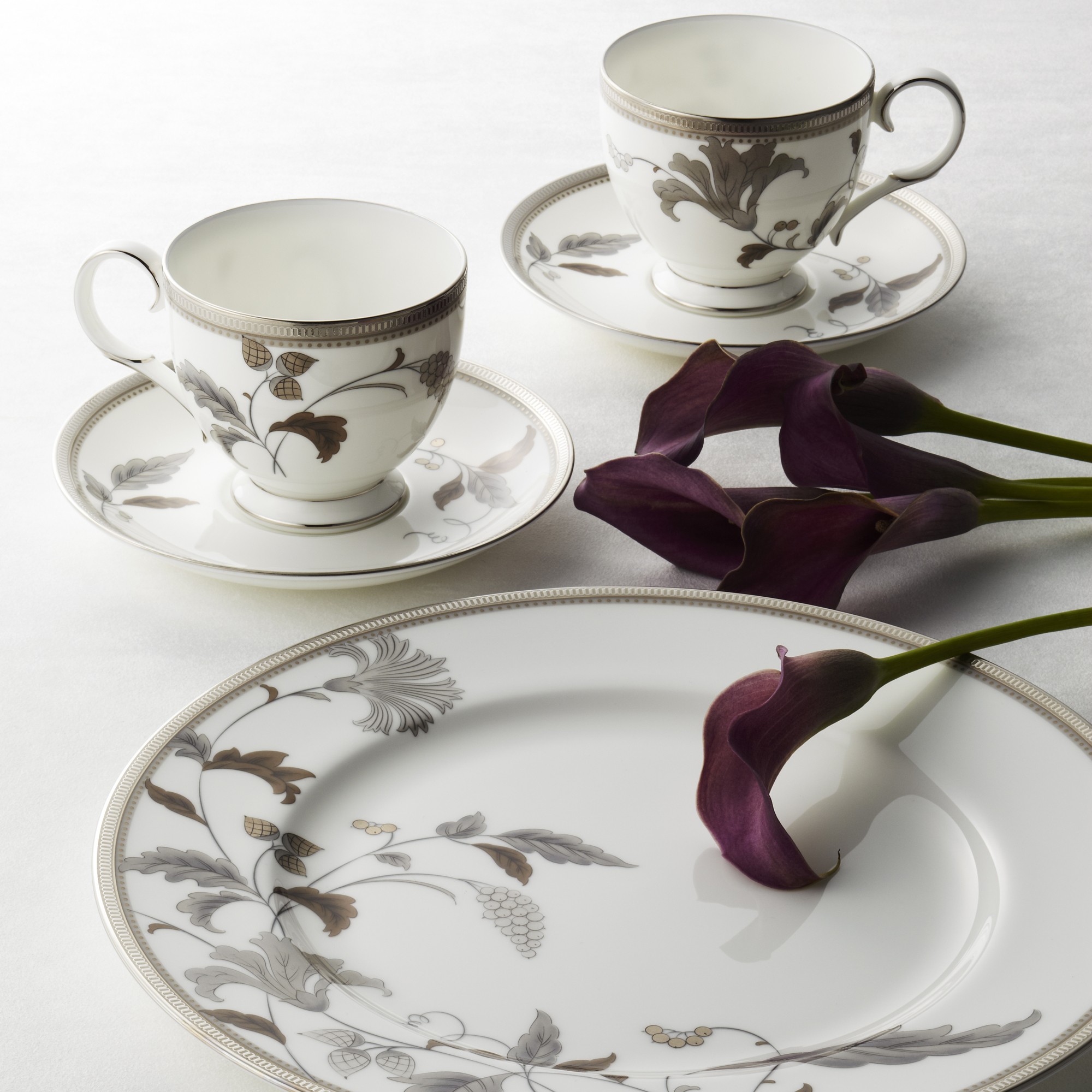 Islay Platinum has been retired from production for the North American market. Named after Islay, the celebrated island of Scotland, famous for malt whiskey and beautifully desolate vistas. The pattern takes what was the beautiful golden color of malt whiskey, but instead translates it into a magnificent platinum rendition expanding the look reminding one of the waves of white foam lapping on the shores of the beautiful salt-sprayed land.