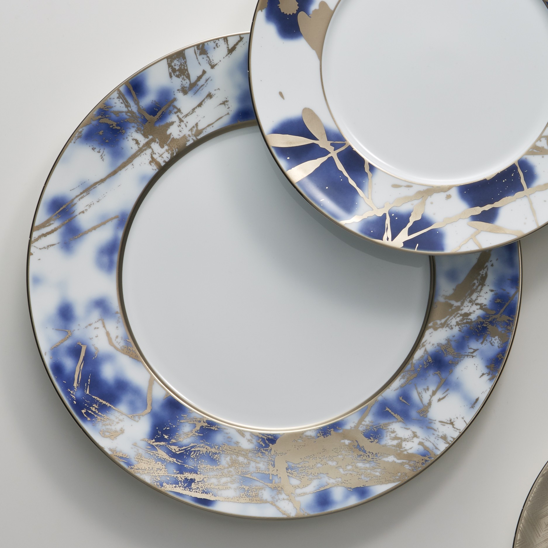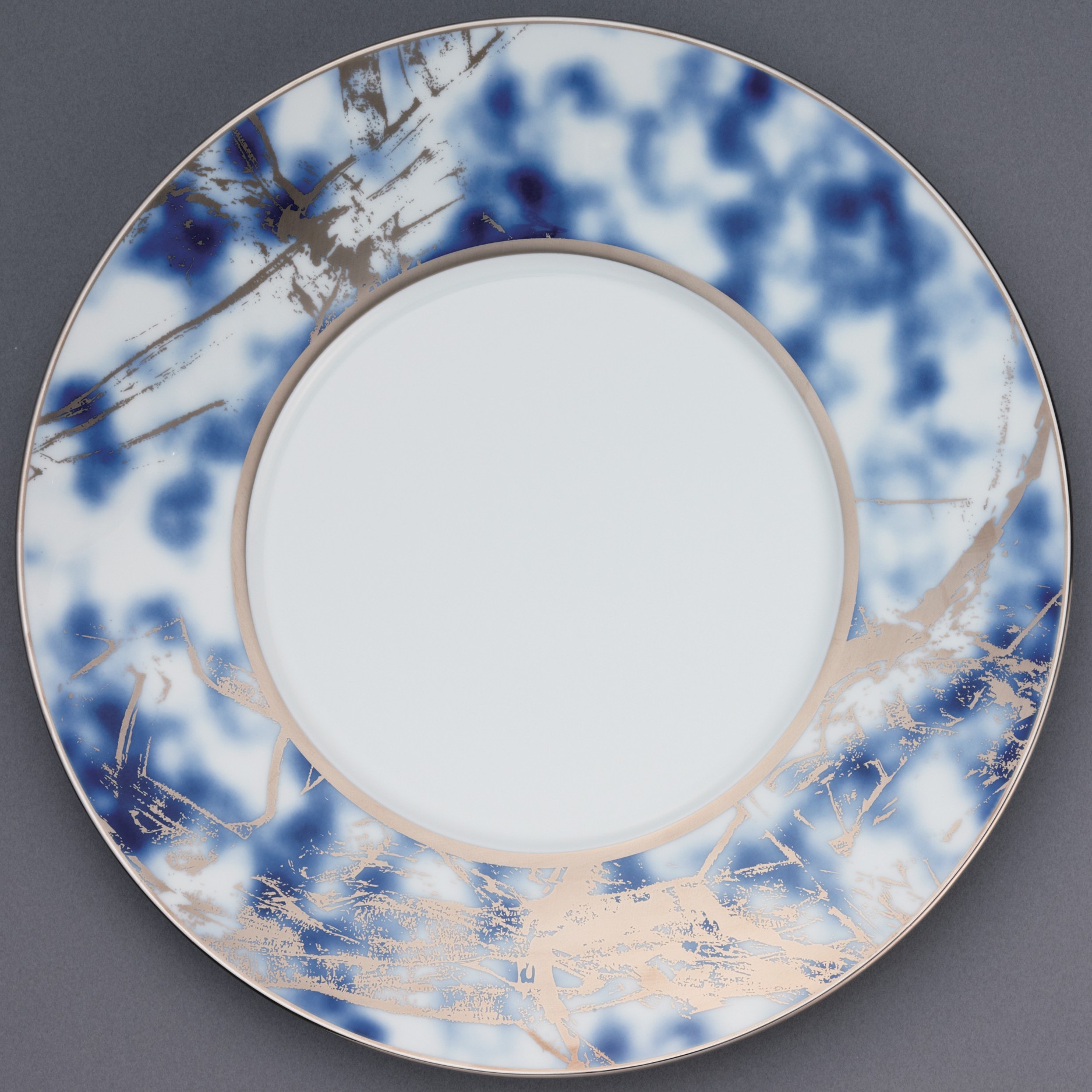 Jubilant Nights Platinum is an abstract celebration, featuring a base of distorted cobalt blue, combined with an array of shimmering platinum brushstrokes.